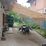Een ingerichte kitchenette met een koelkast en keukengerei is beschikbaar als onderdeel van de zelfvoorzienende voorzieningen van het appartement. Het is gesitueerd op wandelafstand van nog geen 5 minuten ervandaan Laveno Mombello - Stazione FNM bushalte.